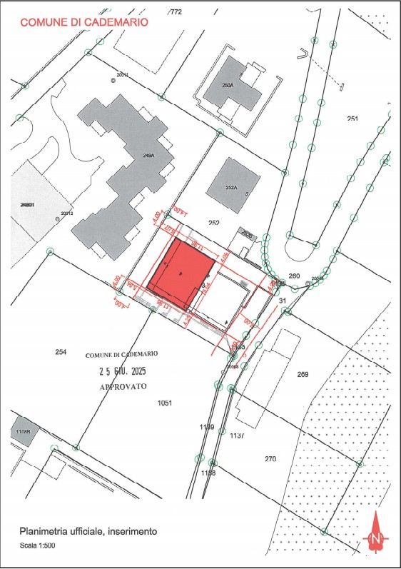 Il terreno misura 809 mq, con un indice di sfruttamento di 0.40 (max. 323.60 mq) e un indice di occupazione del 30% (max. 242.70 mq).